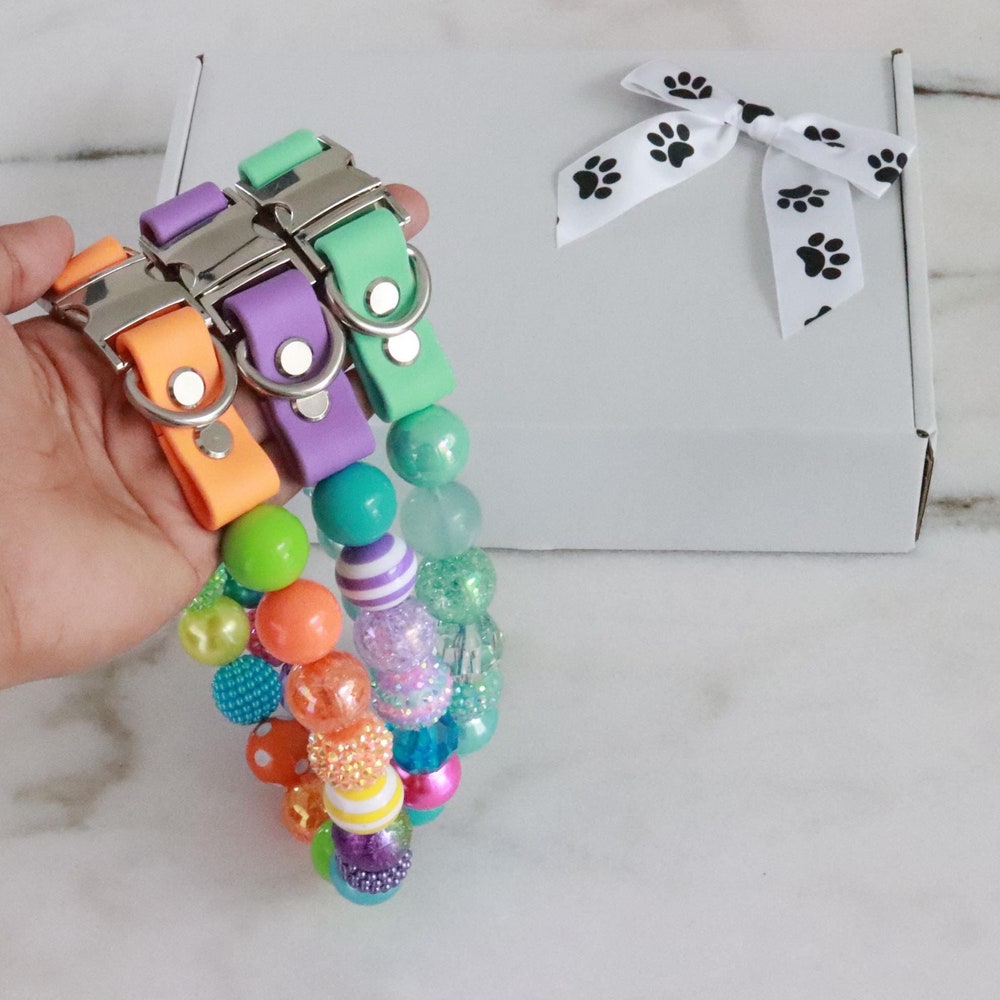 Beaded dog collar, fancy necklace,shiny waterproof dog collar,girly bubblegum bead collar,cute sparkly dog collar,girl party purple necklace