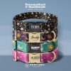 Autumn Plaid Personalized Bow Tie Dog Collar and Leash Set, Orange Handmade Wedding Dog Collar with Custom Engraved Nameplate