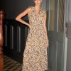Amegoya Women's Boho Flowy Long Sleeve Square Neck Floral Midi Dress Smocked Spring Fall Wedding Guest Dresses