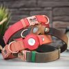 AirTag Dog Collar Personalized, Engraved Leather AirTag Dog Collar, Custom Dog Collar with Air Tag Holder for Small Medium Large Dogs