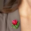 Red Tulip Brooch, Handmade Floral Pin, Elegant Flower Charm, Spring Accessory, Romantic Jewelry, Gift for Women, Bridesmaid, Birthday Gift